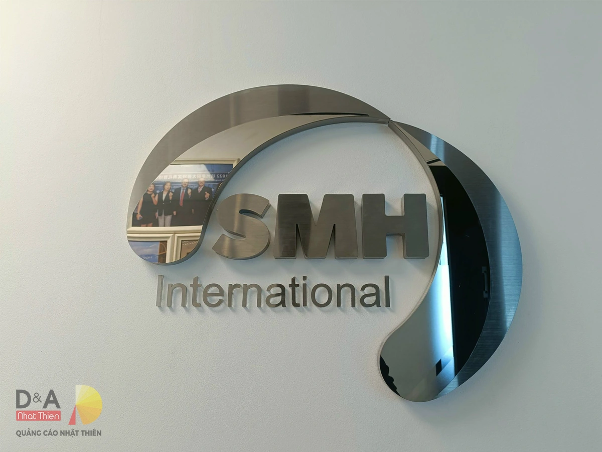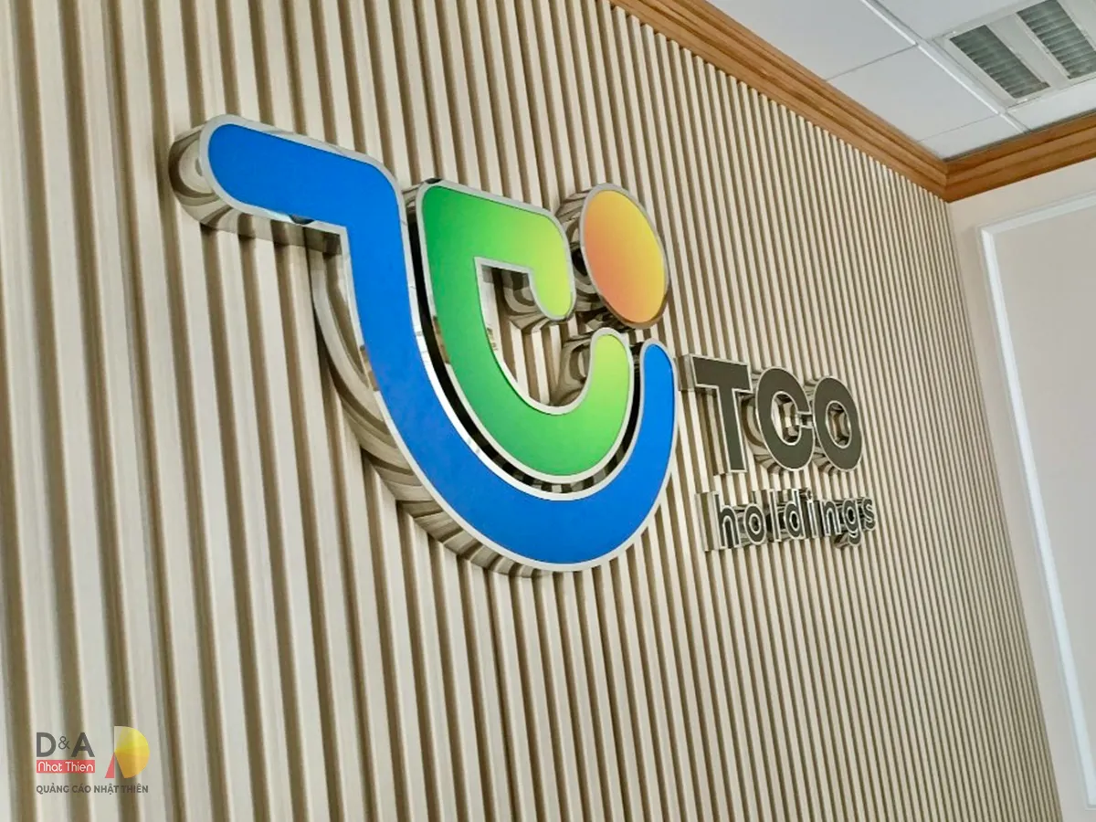 Nhật Thiên luôn có các giải pháp phù hợp và sẽ tư vấn khách tùy vào hiện trạng mặt bằng. Tuy nhiên, với các văn phòng đang hoạt động, không muốn thi công phức tạp, và có hệ tường không phù hợp để đi dây âm thì có thể lựa chọn loại logo inox với lớp nền bảng phía dưới. Vừa mỹ thuật, trang trọng, vừa dễ lắp đặt mọi vị trí bạn muốn.